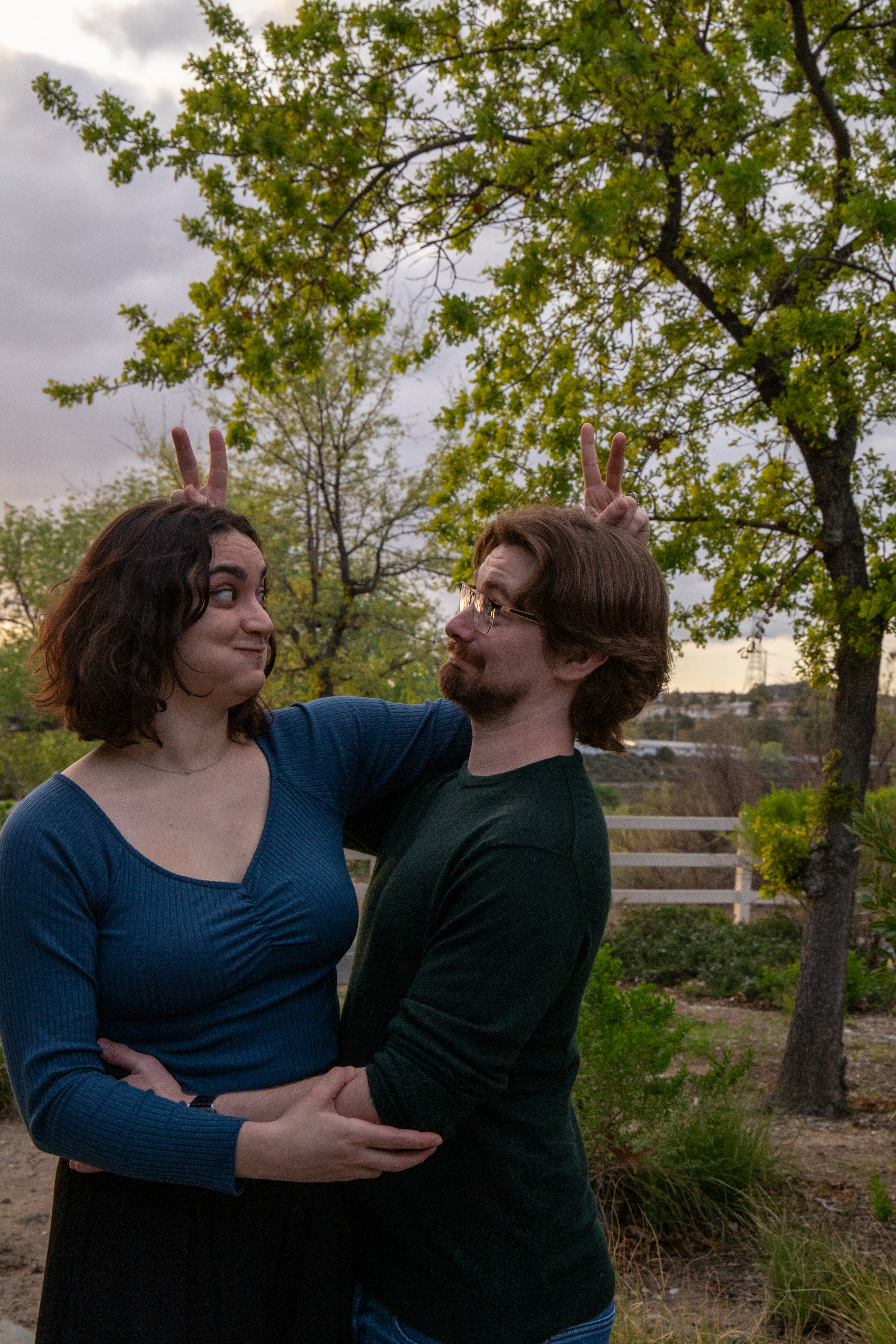 This couple shares a funny moment during their photo session. Adding props can be a fun a hilarious way to make memories.
